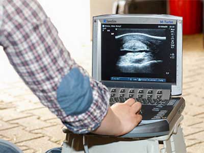 La ecografía es otro medio de diagnóstico no invasivo fundamental en medicina equina. A través de ondas de sonido, podemos obtener una imagen digital de los tejidos blandos y valorar estructuras que no se estudian igual con radiología.